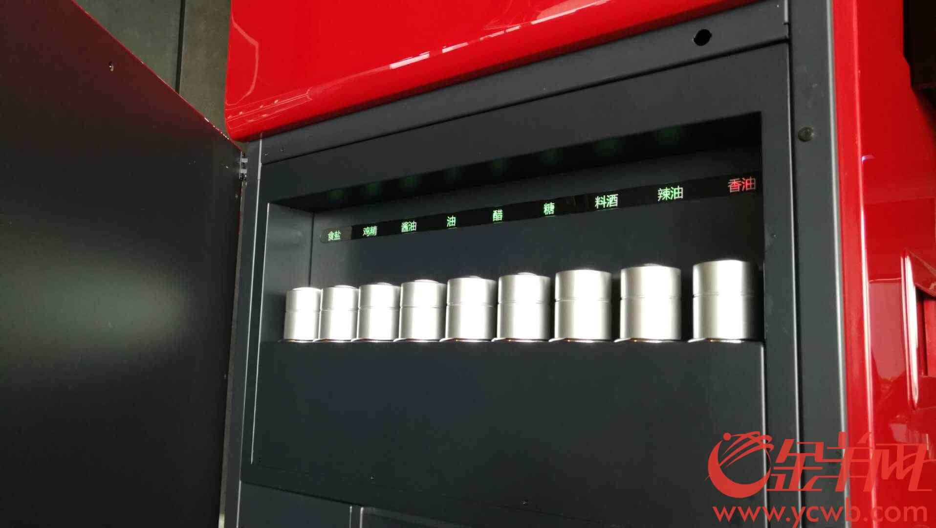 封闭式炒锅旁藏了九种不同的调味料
