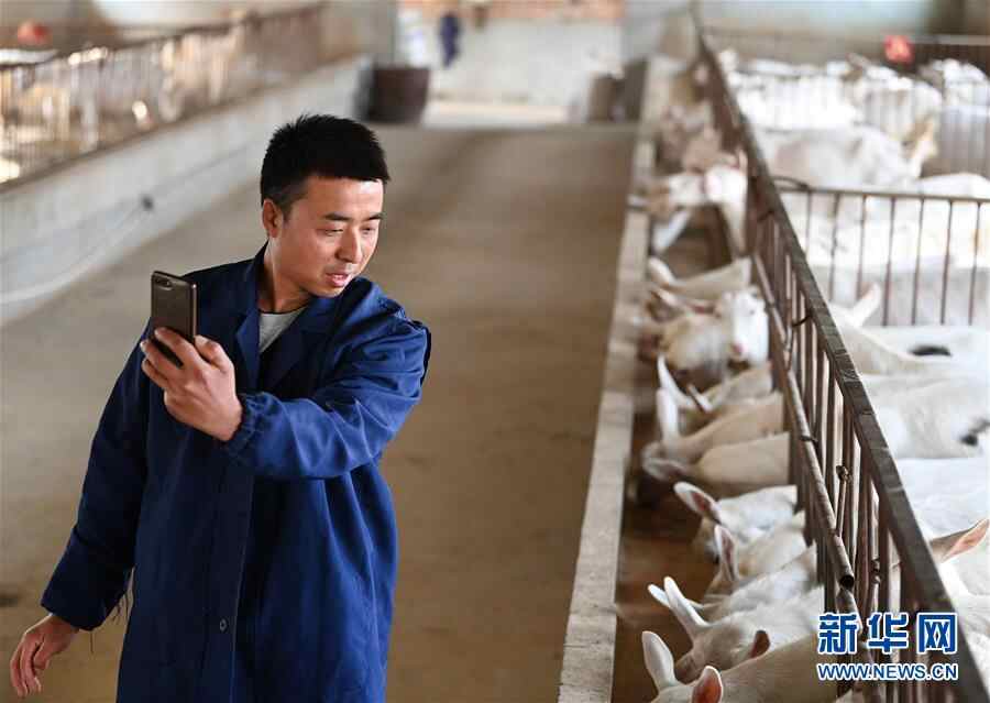 11月3日,陕西省富平县流曲镇双杨村村民向斌在羊圈旁播发短视频。在向斌开设的个人短视频平台账号上,除了家人日常生活的视频,主要是他喂养、销售奶山羊的视频。向斌说,短视频平台已成为他拓宽销路的重要渠道,最近好几单生意都是这样谈成的。 新华社记者陶明摄