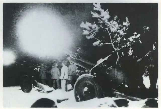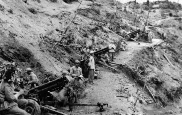 志愿军炮兵用美制M1式155毫米榴弹炮轰击敌人
