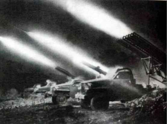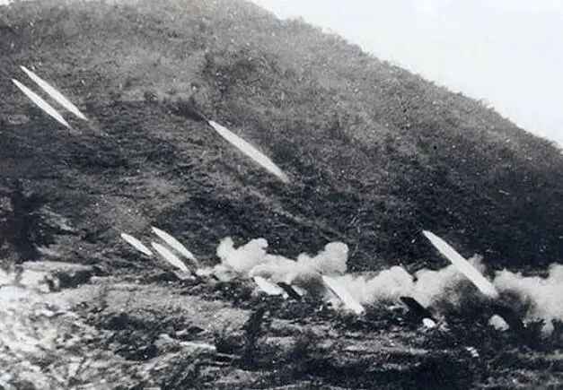 金城战役中,志愿军“喀秋莎”火箭炮正在覆盖敌阵地