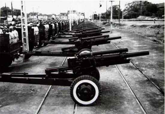 开国大典阅兵式人民解放军炮兵装备的美制M2A1式105毫米榴弹炮