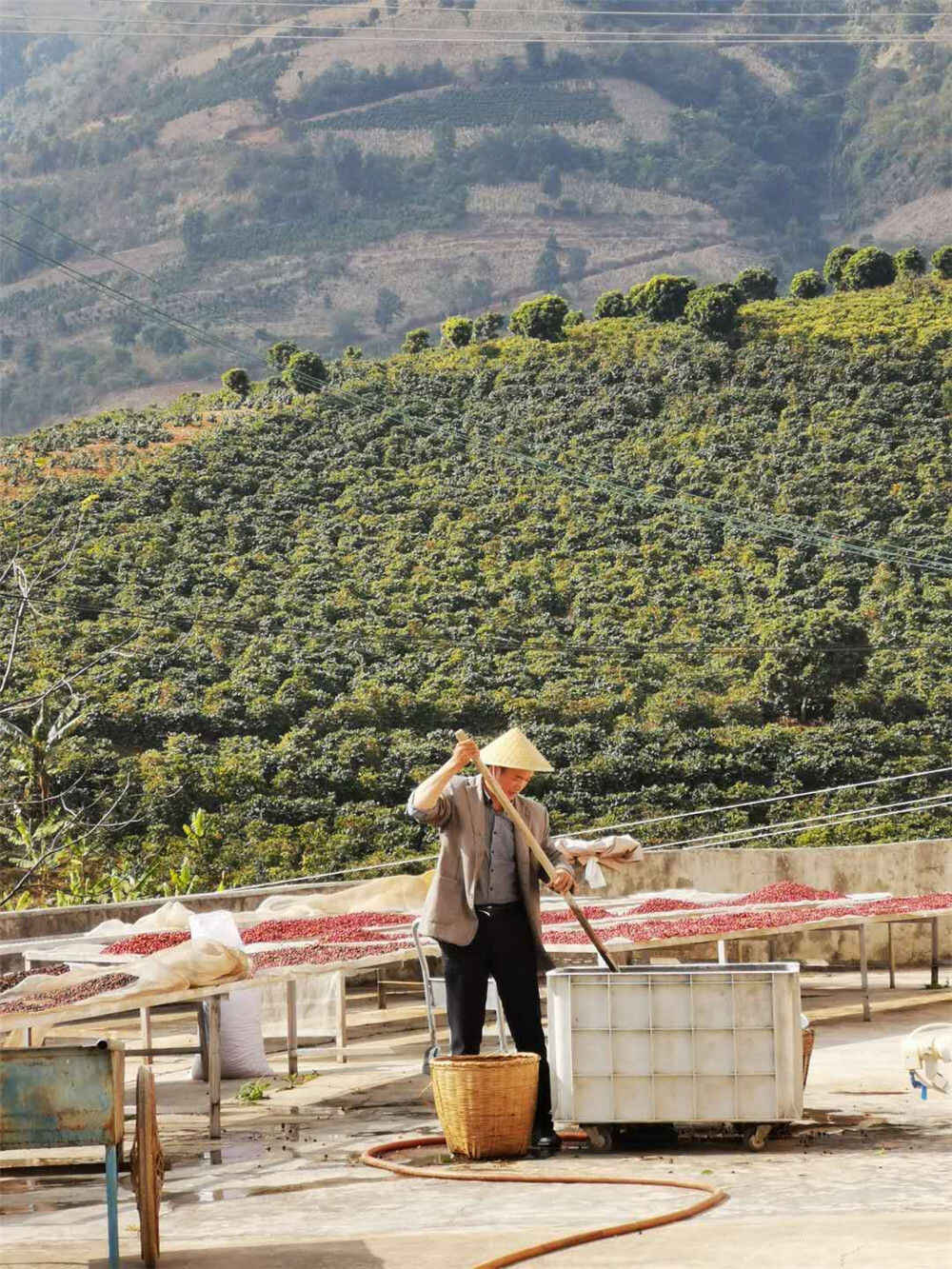 “本来邀请我到现场,但咖啡豆快到采摘季了,为了保证品质,一刻也不敢耽误。”来自云南省保山市潞江镇东松村的44岁咖农番啟佐说。