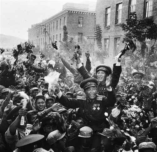 平壤街头朝鲜人民军热烈欢送中国人民志愿军