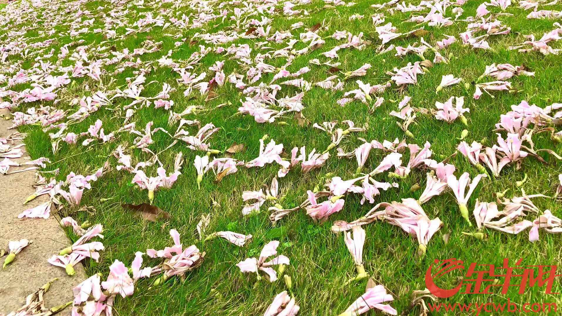 散落的花瓣随意的“躺”在草坪上
