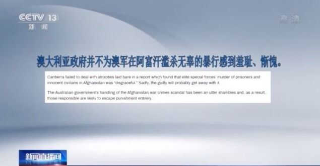 澳大利亚军方日前公布调查报告,证实在阿富汗执行任务的一些澳大利亚军人涉嫌战争罪,制造了多起杀害无辜平民和俘虏的事件。连日来,国际社会纷纷对澳军人涉嫌战争罪行发出强烈谴责。