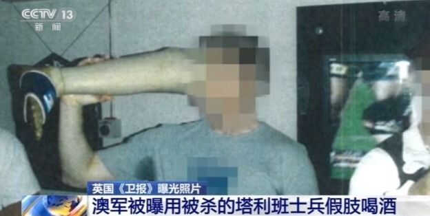 12月1日,英国《卫报》又曝光了一张照片:报道说,2009年,一名澳大利亚特种部队高级士兵在阿富汗一家酒吧里,用被杀死的塔利班士兵的假肢喝啤酒。报道称另外一张照片中,两名士兵用十分夸张的姿势与假肢合影。一些士兵表示,用假肢喝酒的做法得到了上级的容忍和接受,有些军官也参与其中。