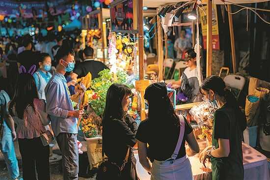 不久前,经文化和旅游部批准,中国旅游研究院主办的“2020中国夜间经济论坛”上,佛山入选“2020中国夜间经济二十强城市”,佛山创意园创意集市入选“2020游客喜爱的十大夜市”。夜晚,走过位于佛山季华四路北侧的佛山创意园(下称“创意园”),这里灯光璀璨,音乐悠扬,各式岭南特色美食和手工艺品让人应接不暇,来自全国各地的游客们共同沉醉在夜色中。