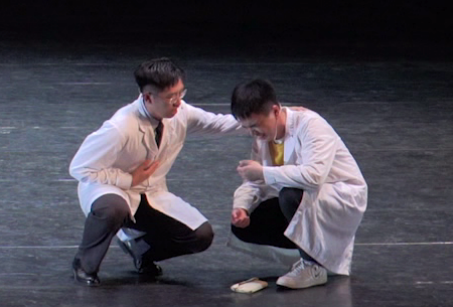 据话剧编剧和诗歌作者、剧组表演指导老师之一的广州大学人文学院戏剧与影视学系喻彬教授介绍,今年8月份得知国家教育部因疫情原因延迟第六届全国大学生艺术展演比赛的通知之后,人文学院领导高度重视,积极鼓励师生创作、组建剧组,通过网络视频进行单个排练,同学们在老师的指导下不舍昼夜地对“声台形表”进行紧张而又艰苦的训练。