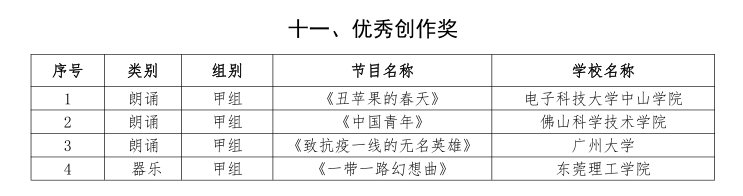 昨日,广东省教育厅公布《广东省第六届大学生艺术展演活动艺术表演类获奖名单》,本次大赛由广东省教育厅主办,共有356组来全省自高校的艺术表演类节目参与角逐。