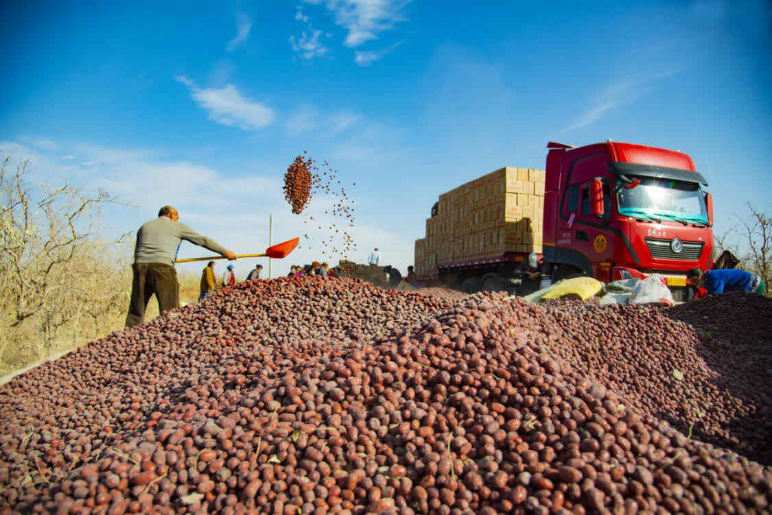 成箱的红枣正在装车(买买提艾力摄)