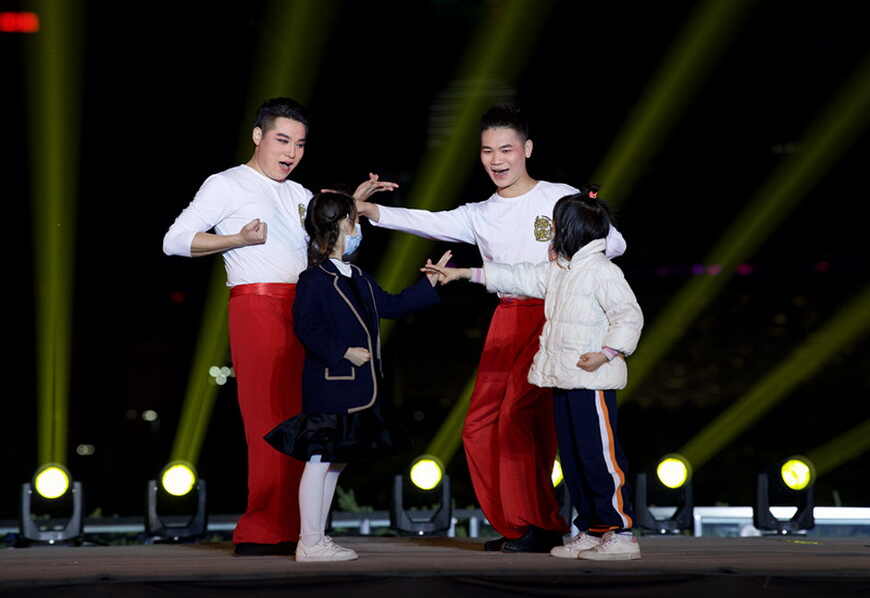 陈健超(右四)、陈韵玲(左五)表演《洞天福地》