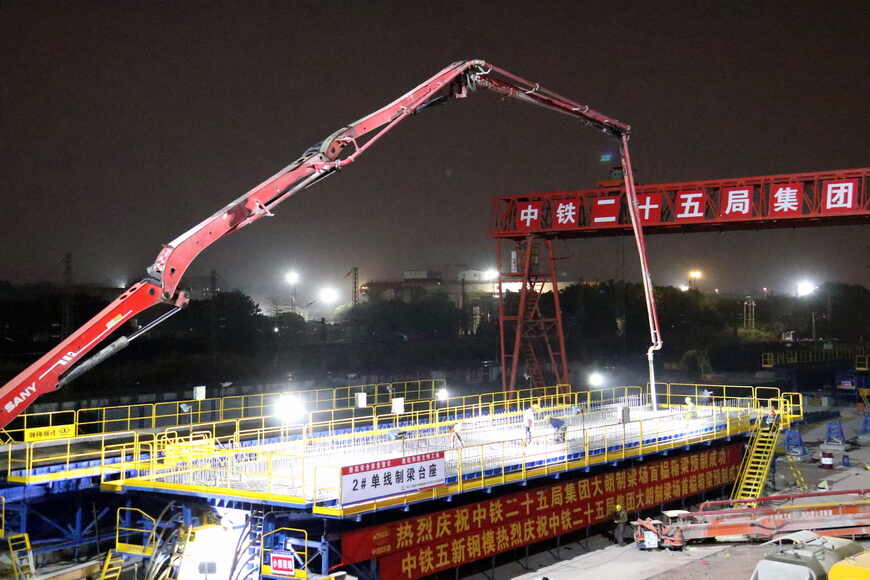 12月26日,经过6个小时的不间断浇筑,粤港澳大湾区重点建设项目——广州白云站枢纽全线首榀箱梁在中铁二十五局大朗制梁场成功浇筑,标志着工程建设进入新阶段。