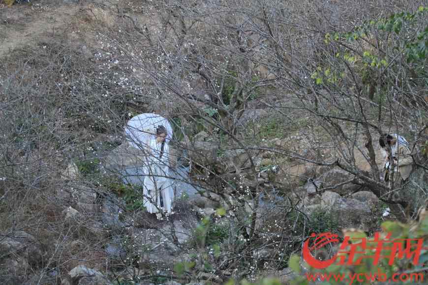 市民游客在广州市从化区良口镇流溪河国家森林公园拍摄梅花“雪景” 梁怿韬 摄
