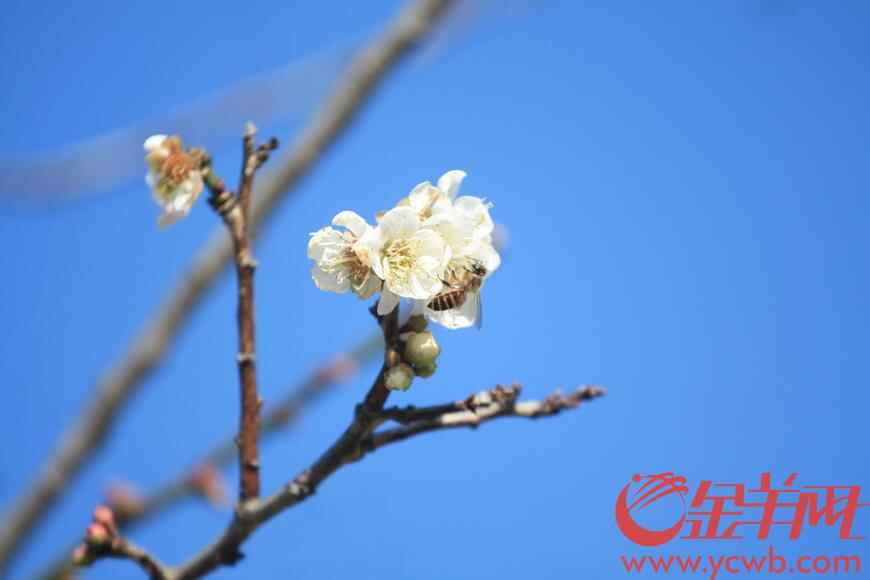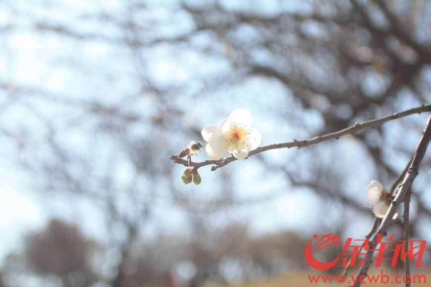 记者现场观察,“香雪缘”的梅花虽然暂时没有萝岗香雪公园内开得茂盛,不过也同样吸引到人类和蜂类。