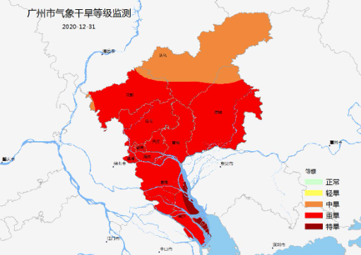广州2020年12月31日气象干旱等级监测 广州市气象局气候与农业气象中心制图