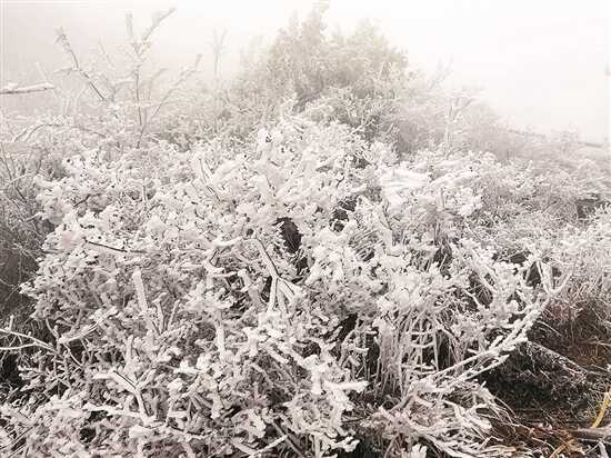 羊城晚报讯 记者陈强、通讯员黄琳雁摄影报道:受强冷空气影响,1月7日早晨,广东清远各地转阴冷天气。其中,清远连山金子山顶录得广东全省早晨最低气温:-3.9℃。金子山工作人员告诉记者,7日8时多,金子山山顶开始飘起小雪,当天下午已经出现积雪。金子山银装素裹,成为白色童话世界。