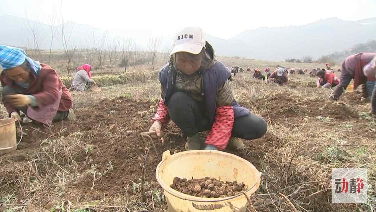 产业化的发展路子不仅让城镇居民就近就业,也让地处山区的村民们在世代劳作的土地里成了工人,企业加工的半夏就来自这片基地。温度接近零度的乌蒙山区,本该是农闲时节,但在赫章县铁匠苗族乡的中药材种植基地里却有着少见的繁忙景象,70多位工人正拿着钉耙提着桶采收半夏。