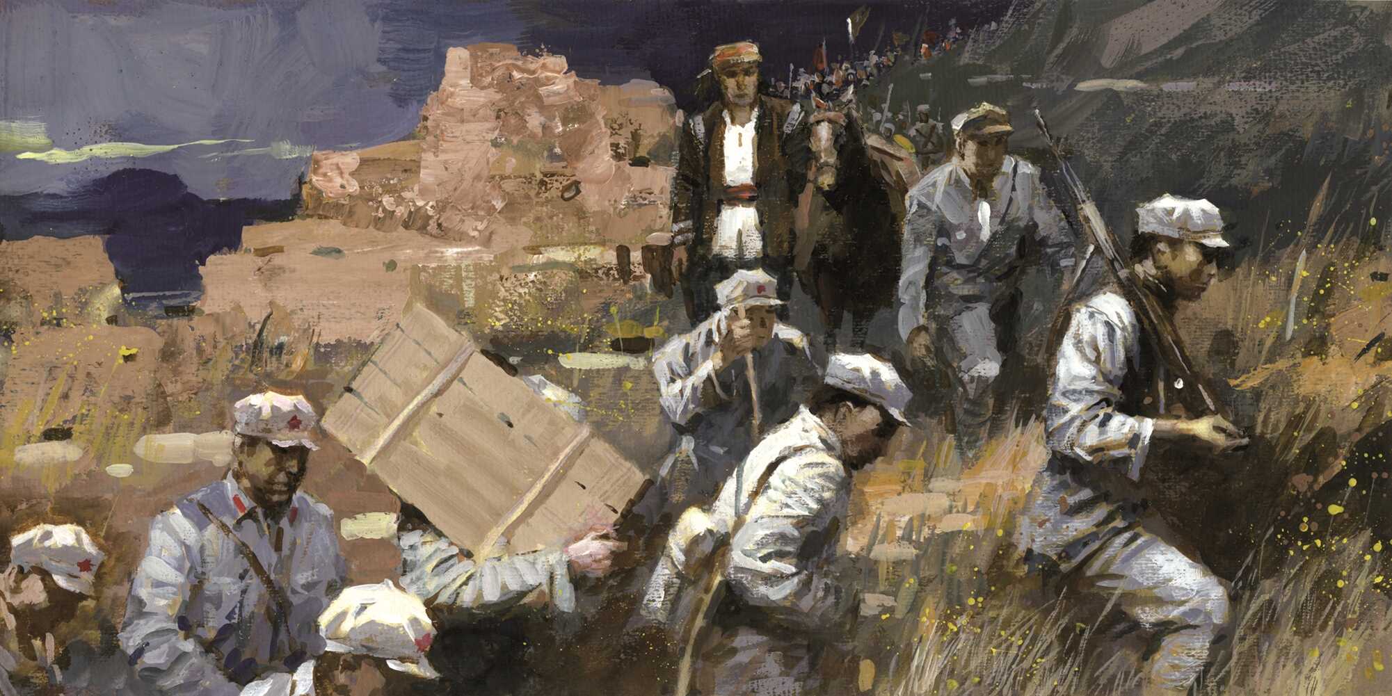 记者在现场看到,展览以展示绘画作品为主,形式包括连环画、绘本及有完整故事的系列性插画、漫画,包括手工书、概念书和文创产品,涵盖国画、油画、版画、水彩等多个画种。由广州美协主席汪晓曙创作的连环画《一个人的长征》,是近年广东连环画创作的佳作。该作品由人民美术出版社出版,文字部分由罗宏根据其小说《骡子和金子》改编,讲述了在湘江之战中,马夫骡子带着红军的金条突围时,与大部队失散,为了将金条归还红军,他开始了一个人的长征。汪晓曙在原作故事的基础上,对人物形象、湘西特色民风、历史战争场景进行了重点创作。