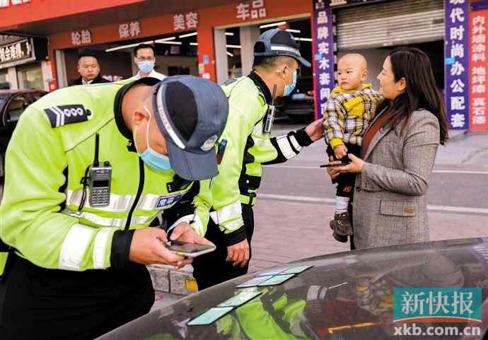 ■铁骑手和车主的孙子互动。铁骑手接警后3分钟到达交通事故现场,疏导交通并进行事故处理。