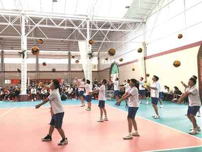西关外国语学校的同学们上排球教学观摩课