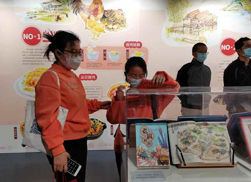 羊城晚报全媒体记者在现场看到,本次展出的漫画绘本作品中不乏白切鸡、盆菜、广式烧腊这些粤式名菜的身影。除了对美食的漫画化呈现,创作团队还在作品中对其蕴含的广府饮食文化进行了讲解。