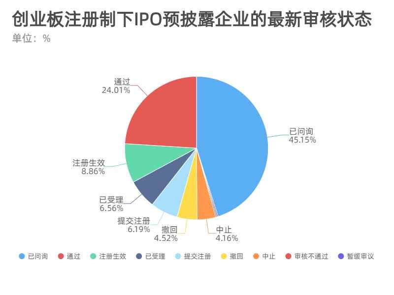 2020年6月15日,深交所开始受理创业板在审企业的首次公开发行股票、再融资、并购重组申请。6月30日,开始接受新申报企业提交的相关申请。8月24日,创业板注册制实施后的首批公司正式亮相交易。至此,创业板注册制推进进入快车道。