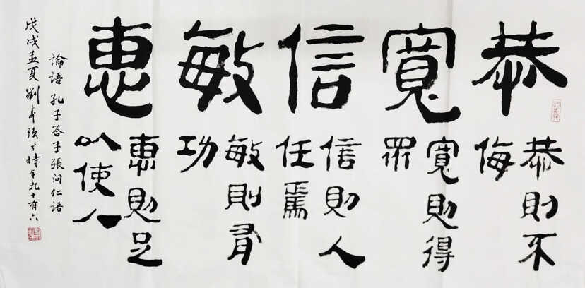 本届回顾展,集中刘寿强数十年间百余件代表作,尤其是简帛体书。简帛体书是他自成一格的硕果。刘寿强曾刻苦临摹马王堆、居延多地出土的汉代简帛,又上溯商周青铜器《毛公鼎》《散氏盘》等铭文,下接秦篆汉隶,兼收并蓄,由临摹渐变为自创,形成标新立异的风格特色。据刘老自述,他是以汉帛书《老子乙本》为基础的。