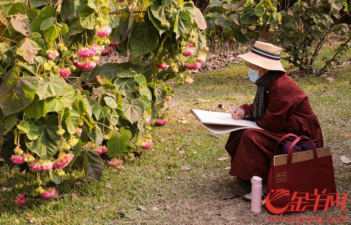 在广州华南植物园,非洲芙蓉的美丽芳容吸引了不少花卉摄影者、绘画爱好者