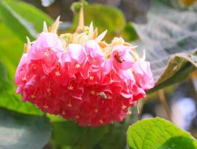 非洲芙蓉是梧桐科非洲芙蓉属,热带或亚热带常绿灌木。别称有吊芙蓉、粉红球、百鈴花和热带绣球花等。非洲芙蓉树冠圆形,枝繁叶茂。花从叶腋间伸出,伞形花序,悬垂花球,花色粉红,一朵五瓣,冬季吐艳,是理想的蜜源植物。