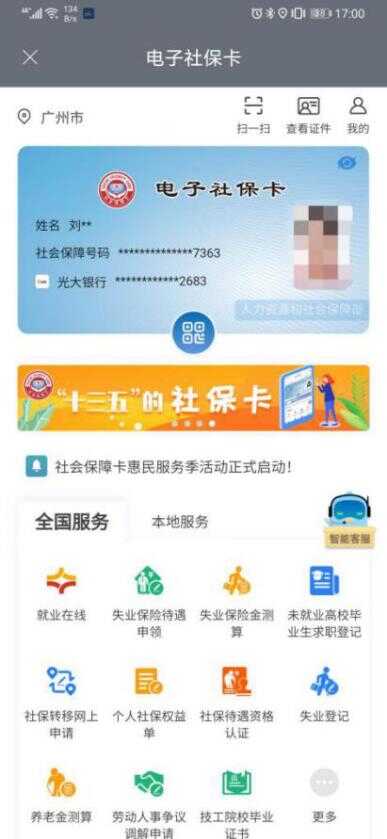 据了解,现在全国共有13.35亿社保卡持卡人,截至2020年11月30日,广东省社保卡持卡数11410万张,覆盖本省99%常住人口,电子社保卡申领3389万张,每3个持卡人中已有1人同时申领电子社保卡。