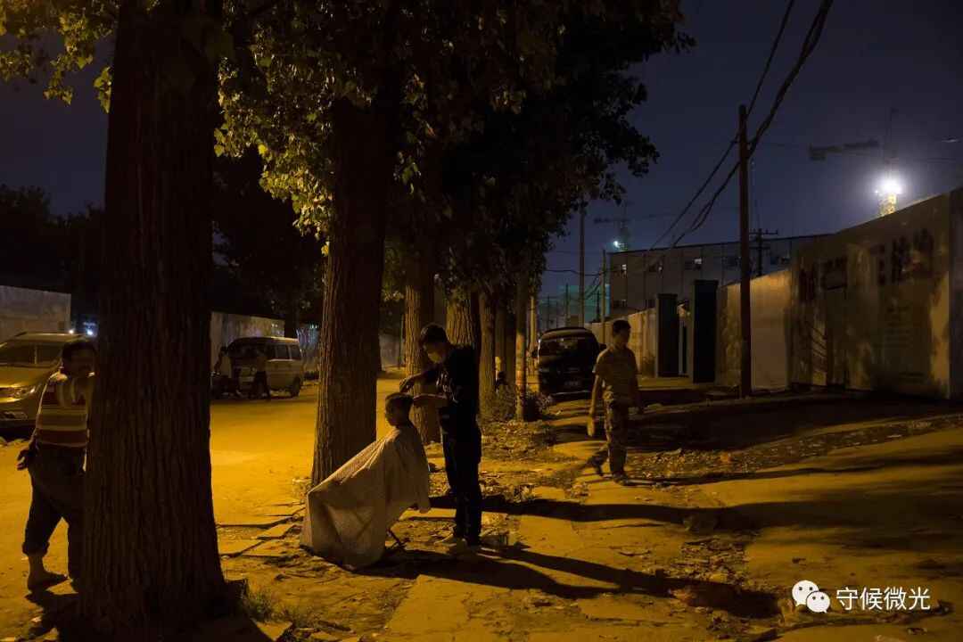 2015年7月7日,星火站附近的一处住宅小区建设工地旁,工人正在路边理发。中国青年报 陈剑/摄