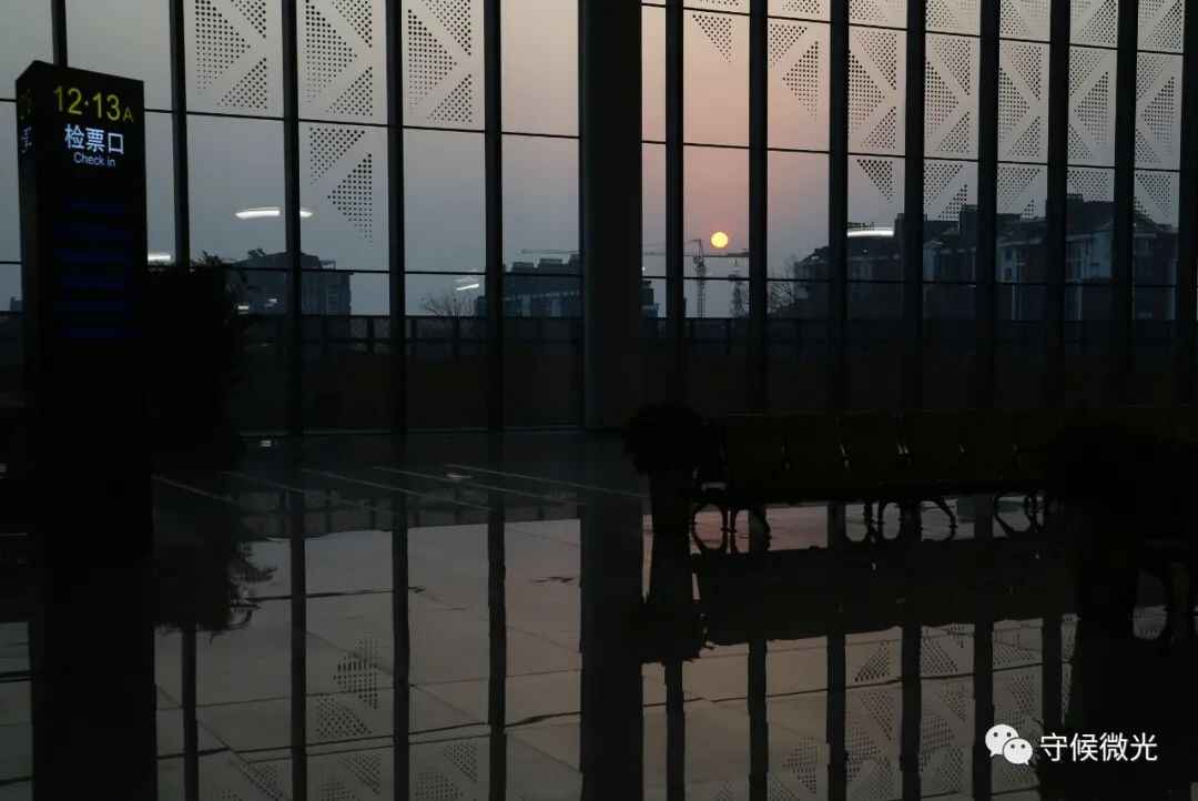 2021年1月20日,新落成的北京朝阳站窗外,一轮朝阳从东方升起。中国青年报 陈剑/摄