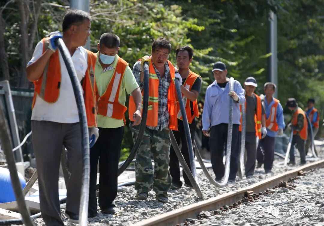 2020年9月22日,北京朝阳站附近,京哈高铁北京至承德段进入最后的施工建设阶段,工人们正在铺设电缆。中国青年报 陈剑/摄