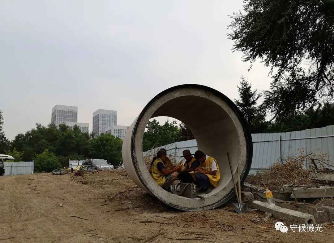 2019年7月4日,新的星火站(现为朝阳站)建设工地附近,工人在水泥管里休息。中国青年报 陈剑/摄