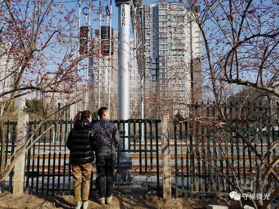 2021年1月17日,北京朝阳站沿京包线往南2公里左右,两位年轻人隔着栅栏向铁路张望。中国青年报 陈剑/摄