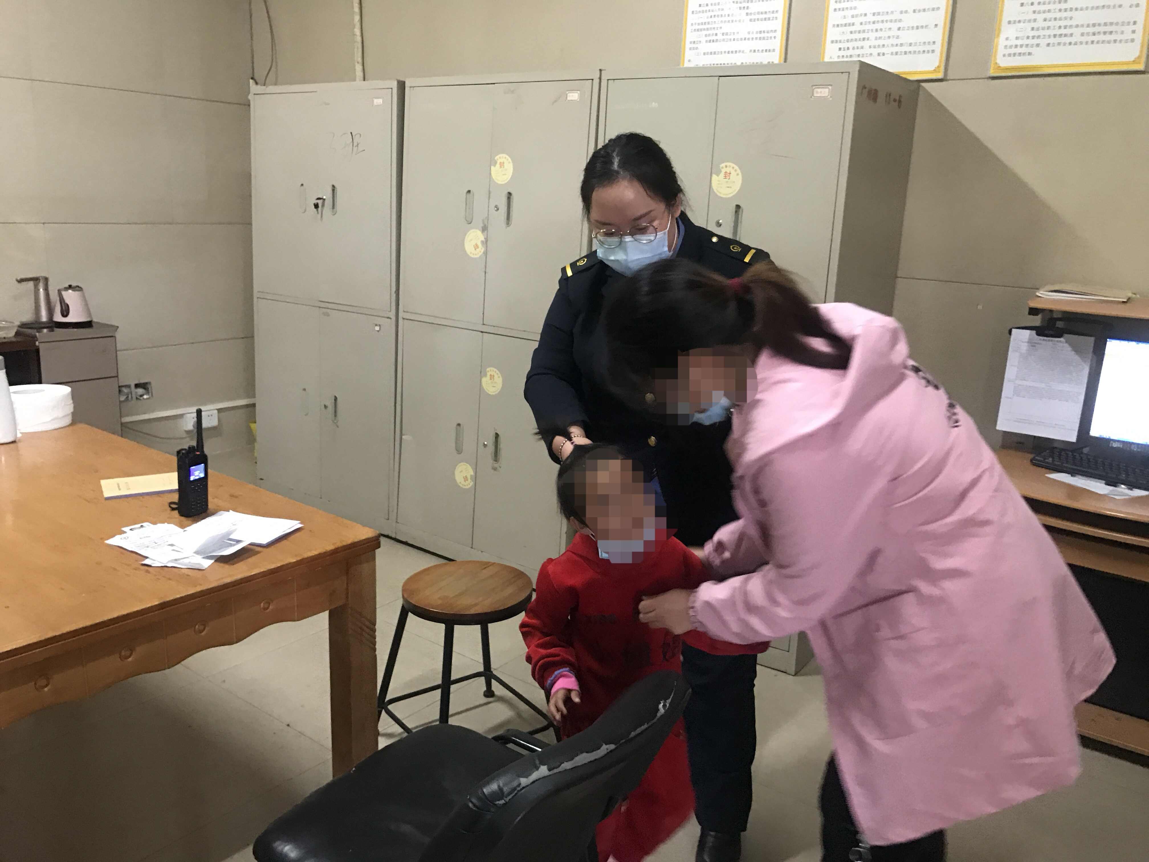 无独有偶,当天下午广州南站,也发生了工作人员紧急寻找走失孩子的一幕。15时,韦女士带着3岁的女儿文文,准备从广州南站乘坐D3762次回乡过年。一不留神3岁的孩子文文从洗手间里走了出去。韦女士匆匆跑到广州南站初心服务台求助。工作人员蒋依默立即从韦女士手机里拿到文文的照片通知同事,在候车室里展开地毯式搜寻,同时呼叫了综合指挥中心播放寻人广播。