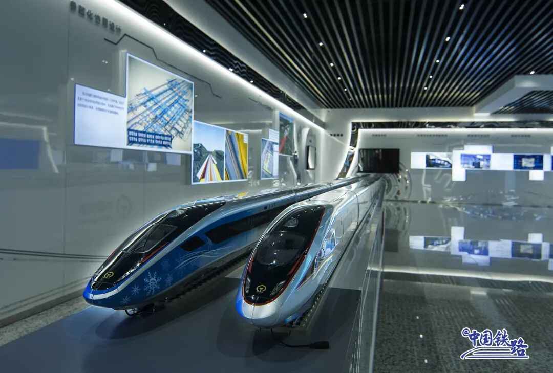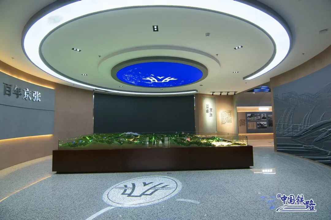 百年京张铁路历史展厅内,陈列着京张铁路沙盘、京张铁路及京张高铁建设图片、钢轨模型、智能动车组列车模型等,讲述着百年京张铁路故事,展示了引领世界的京张高铁新技术、新装备,记录中国铁路的高速发展。