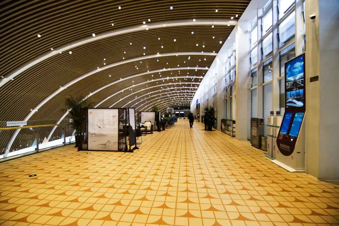 作为服务冬奥会的高铁站,太子城站地下一层换乘中心设有快速进站通道、奥运临时进站通道及赛时综合服务中心。换乘中心与市政枢纽衔接,让旅客出行更加便捷。