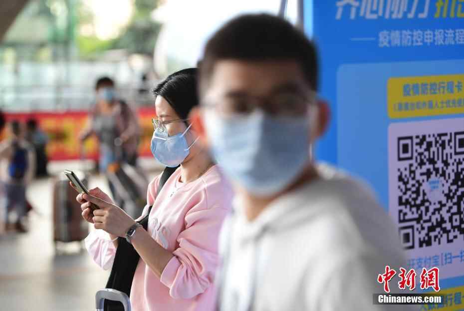 2月6日,旅客在广东省深圳市深圳北站东广场候车。深圳北站严格按照防疫要求,旅客须戴口罩、测体温,扫健康码后再进站,多举措保障旅客出行安全。中新社记者 陈文 摄