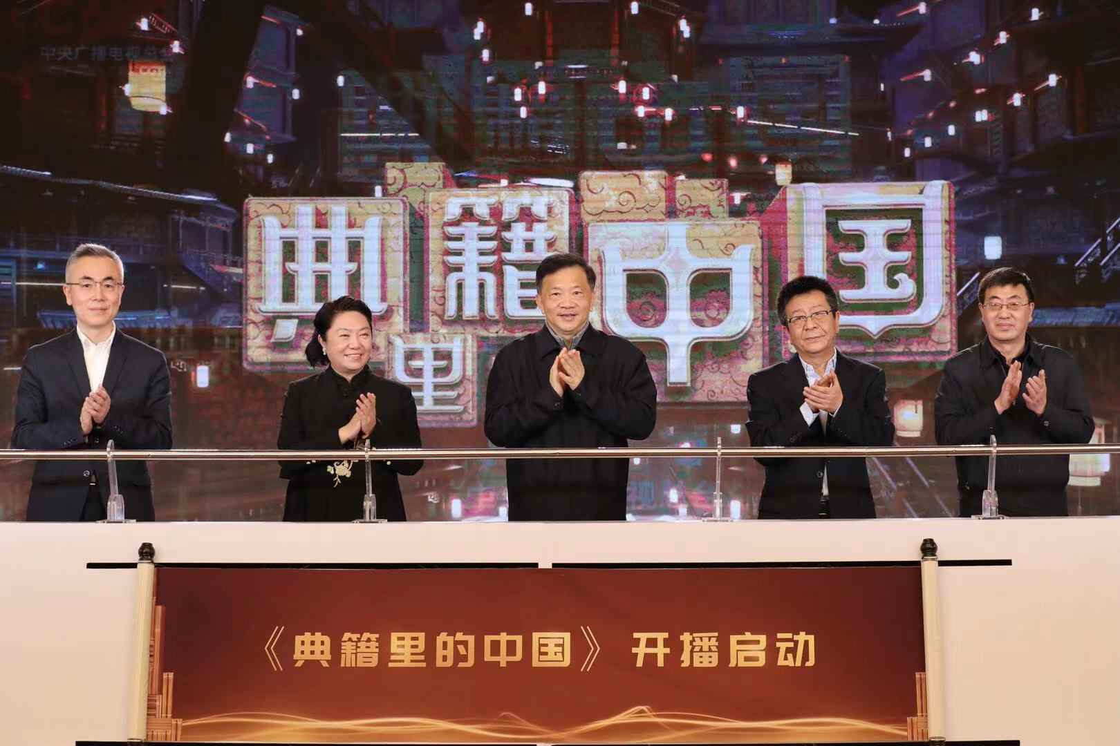 2月10日,中央广播电视总台举行大型文化节目《典籍里的中国》开播启动仪式。中宣部副部长、中央广播电视总台台长兼总编辑慎海雄出席并启动开播。中央广播电视总台编务会议成员李挺、中国国家话剧院院长田沁鑫、中国社会科学院中国历史研究院副院长李国强等一同出席。