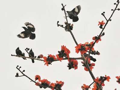 木棉花花朵虽大,却并不香。它对蜜蜂、蝴蝶没什么太大吸引力,却常常能吸引大批鸟儿来采蜜。