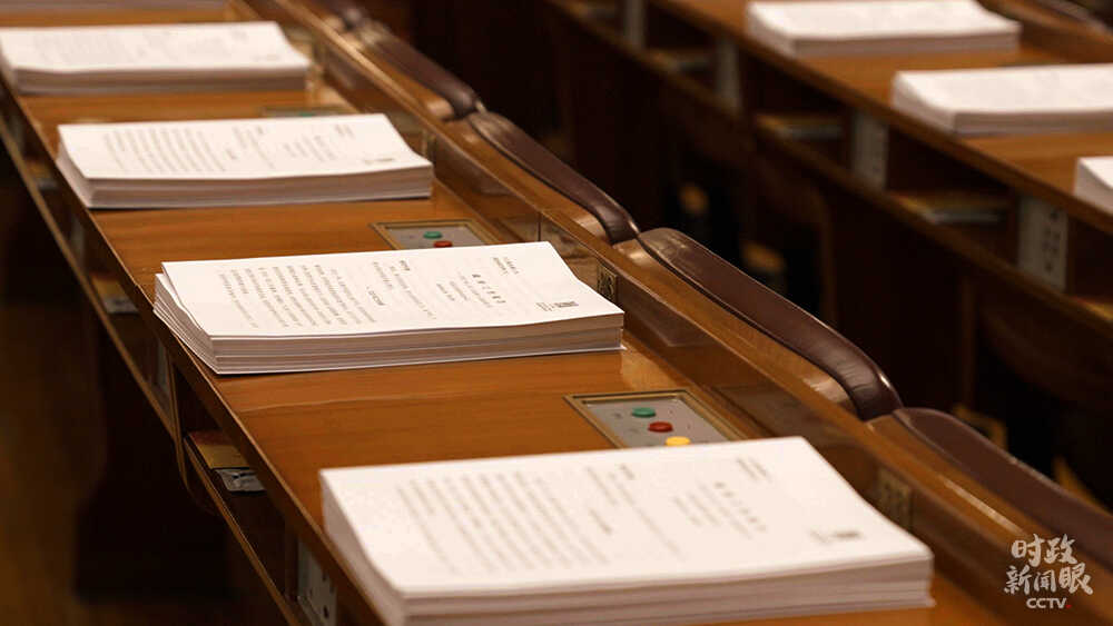 △摆放在代表座位上的政府工作报告等文件(总台央视记者彭汉明拍摄)