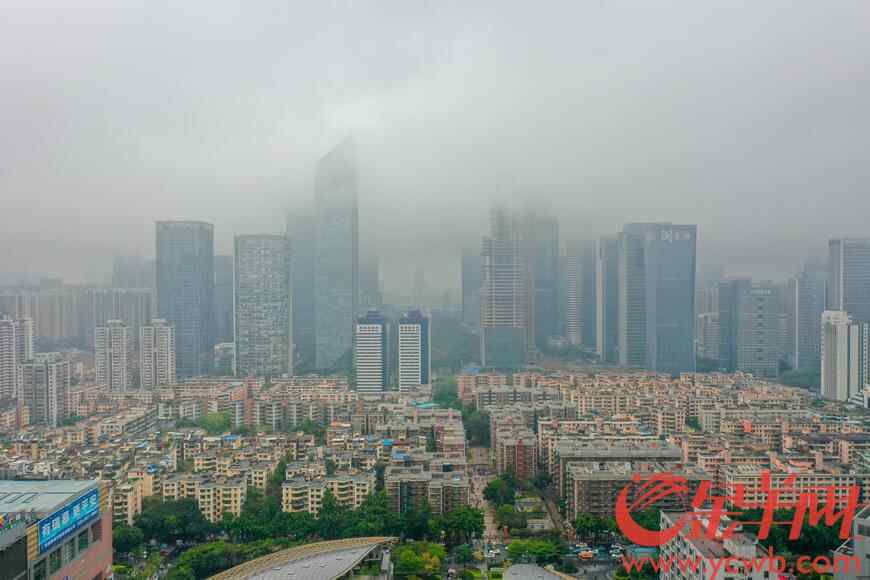 3月6日,雨雾天气下的广州,天河一带的高楼躲在“云里雾里” 梁怿韬 摄