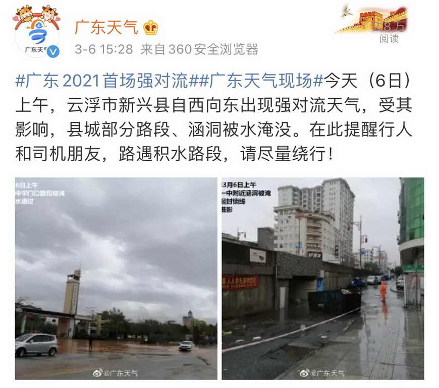 “惊蛰”过后,水汽开始“光临”广东。3月6日清晨起,强对流天气开始影响广东大部,结合3月5日开始在不少地方出现的“回南天”,不少地市的居民度过了湿漉漉的一天。