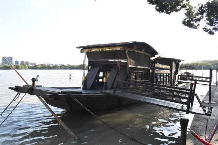 接下来去哪里开会?最初,代表们曾考虑在杭州西湖续会,但西湖是著名景点,游客众多,并不适合。这时,代表之一李达的妻子王会悟提出可以在嘉兴南湖租一条船,在船上开会。“我想还是到嘉兴叫只船(开会),嘉兴至少有熟人,有朋友,假使真的出现危险,我还可以通过熟人朋友找嘉兴有名望的社会贤达。”王会悟在多年后接受采访时曾回忆道,当时,南湖游客相对较少,更安全,且从上海到嘉兴比到杭州少一半的路程,更方便快捷。