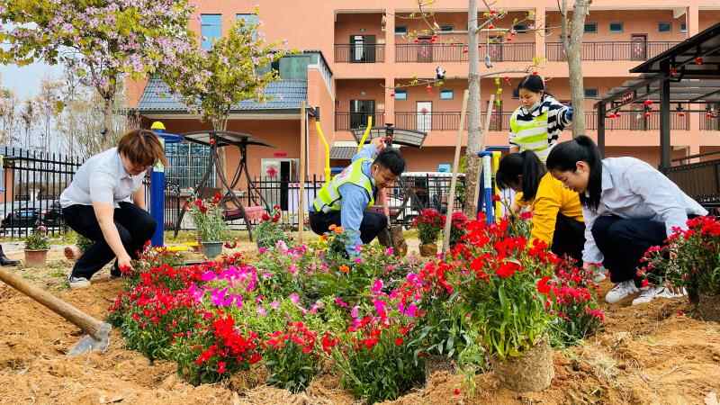 在兴华高速横陂服务区的“玫瑰园”,服务区经理陈瑜带领10名员工,干劲十足地将一株株玫瑰花按照心形的摆设栽种到泥土中,周边再辅以其他花草装饰。经过一上午的忙碌,200余株玫瑰花苗在原本只有绿草的土地上扎下了根,显得生机勃勃,引得过往旅客纷纷驻足观赏。