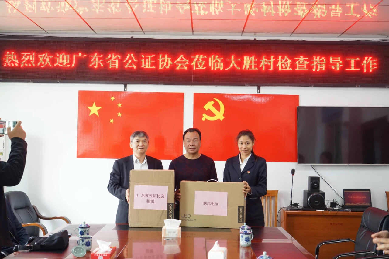 近日,广东省公证协会组织广东省公证行业民法典宣讲团总团,广州、汕头、东莞市公证协会,广州市南方公证处、深圳市深圳公证处、东莞市东部公证处、江门市五邑公证处等代表到广东省丰顺县潭江镇大胜村开展法治助力乡村振兴进村送温暖活动。活动仪式在大胜小学举行。