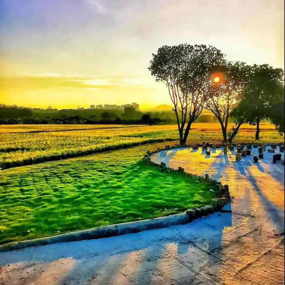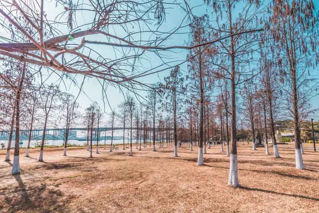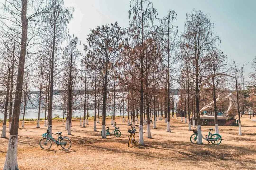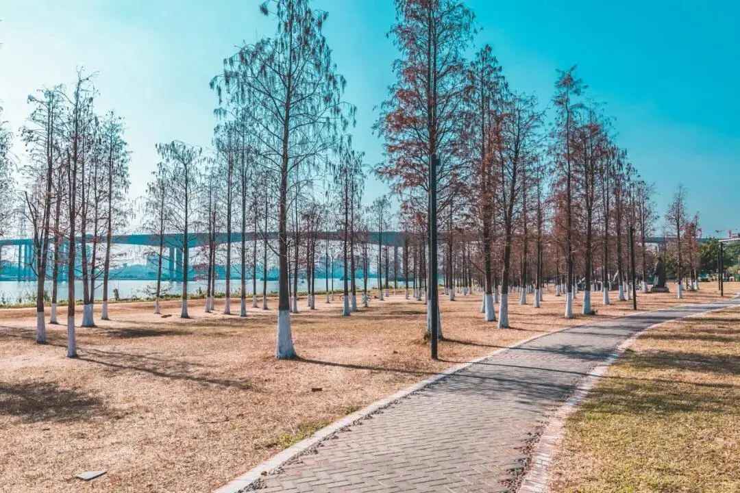 沿着公园小道,在这里漫步,太阳均匀地洒下来,也太舒服了吧。