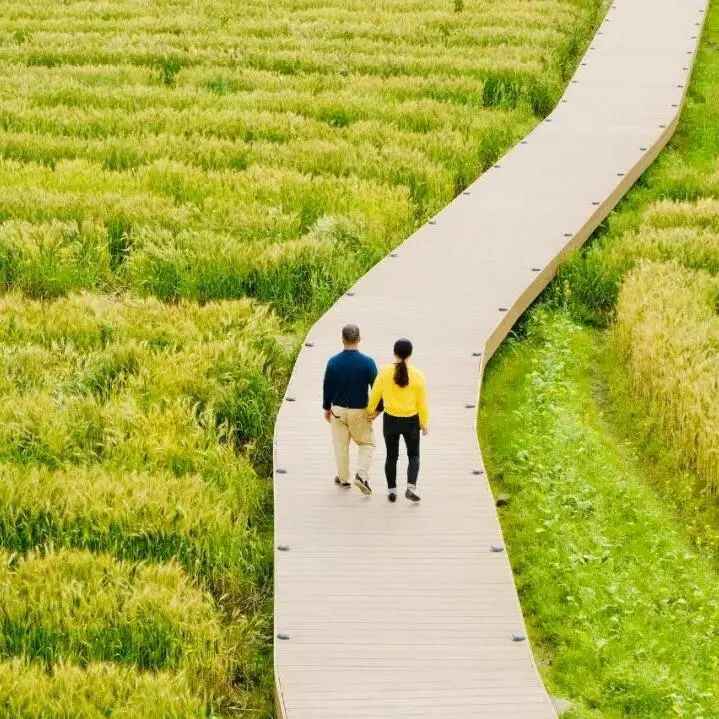 在麦田中,一条长长的栈道,让行走其中的游客更好地融入大自然,在青山绿水之间唤起浓浓乡愁。