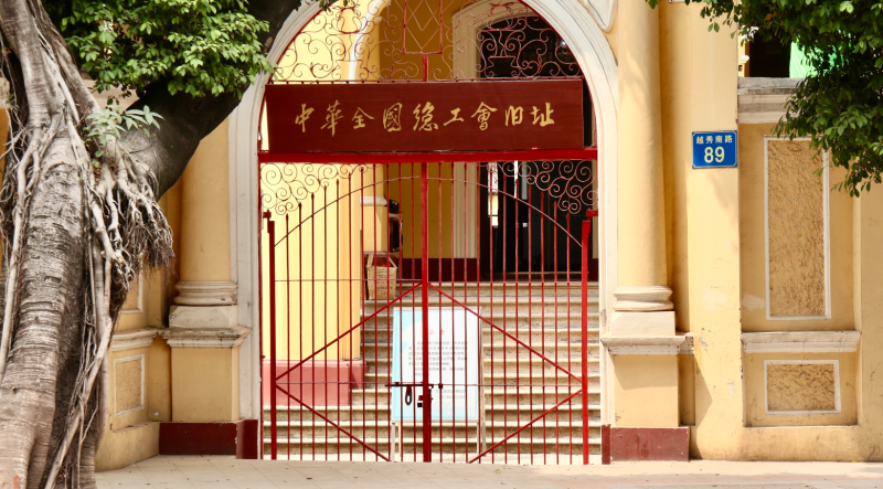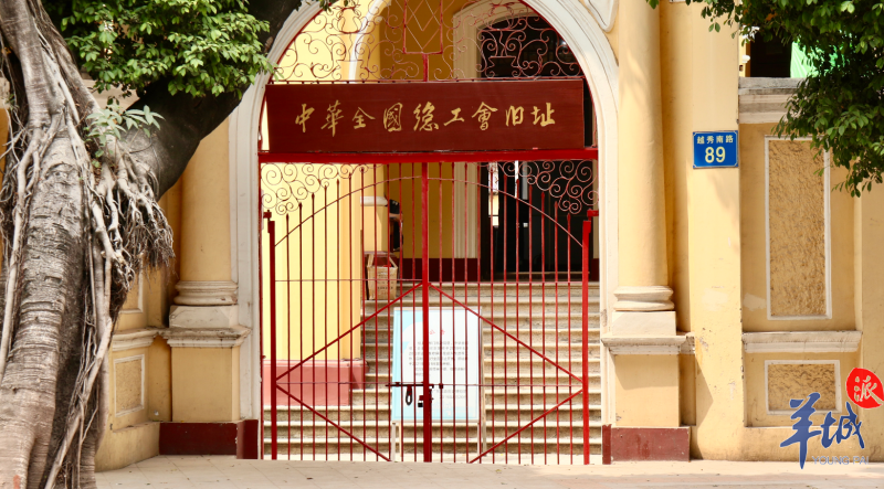 走在越秀南路上,闹市之中的一栋黄色的小楼格外引人注目——门口牌匾写着:“中华全国总工会旧址”,此为曾在1925年5月担任中华全国总工会执行委员会副委员长的刘少奇所题写。